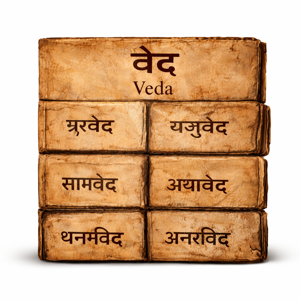 ऋग्वेद, यजुर्वेद, सामवेद और अथर्ववेद सनातन परंपरा के प्राचीन स्तंभ हैं, जिनमें जीवन और ब्रह्मांड के गूढ़ सत्य समाहित हैं।
