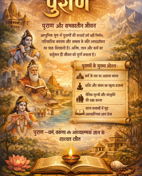 पुराण केवल कथाओं का संग्रह नहीं, बल्कि जीवन को धर्म, विवेक और भक्ति की ओर ले जाने वाले मार्गदर्शक ग्रंथ हैं। इनमें निहित उपदेश मनुष्य को सही आचरण, कर्तव्यबोध और आध्यात्मिक चेतना से जोड़ते हैं। सनातन धर्म के ये पावन ग्रंथ जीवन में संतुलन, शुद्धता और आत्मिक उन्नति का मार्ग प्रशस्त करते हैं तथा मानव को दिव्य मूल्यों के साथ जीने की प्रेरणा देते हैं।